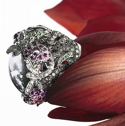 Lydia Courteille灰金戒指四季之春天:钻石,粉红色宝石,祖母绿宝石—5500欧元
