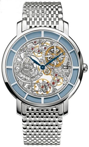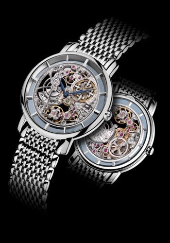 百达翡丽本次亮出的第二件作品同样与众不同:白金款式ref. 5180 calatrava系列腕表,一款绝对空前的镂空透视腕表杰作。带嵌入式迷你摆陀的caliber 240 超薄自动上弦机芯与各个组成零件均精细镂空成金线骨架,展现出令人叹为观止的透视效果。甚至表壳本身以及表环都将之镂通得少无可少,仅保留无法取走的支撑结构。这些精雕细琢的成果就是一枚堪称“时间展示之窗”的作品,令每一个钟表爱好者禁不住为之痴迷。