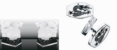 卡地亚龙形装饰特别款书脊(左)、卡地亚中国龙图案袖扣(右)