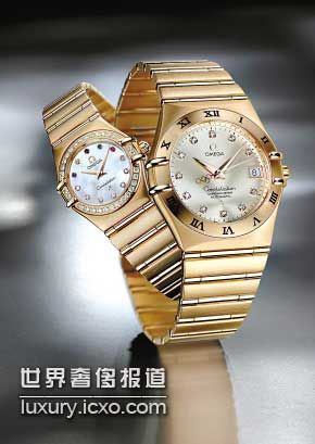 为了庆贺北京2008年奥运会倒计时一周年,欧米茄特别推出了首个“北京奥运系列”星座系列男女款限量腕表。表壳上独特的四个托爪设计是欧米茄星座系列的经典造型。女款装配亮泽的白色珍珠贝壳表面,10时至2时五个小时刻度由左至右分别镶嵌蓝宝石、黄宝石、黑钻、绿宝石及红宝石,代表奥运五环颜色;其余的小时刻度位置则镶嵌耀眼白钻。男款则装置自动上链天文台机芯,秒针末端缀以奥运五环,而表盘下方的星徽标志更散射亮泽纹理。