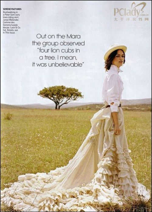 近期Keira knightley为六月版Vogue以田园风光为背景,拍摄了一组具有清新感觉的服饰大片。