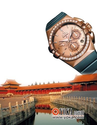 (上) 欧米茄“北京奥运”星座双鹰同轴限量计时表,采用3313自动上弦计时机芯,此系列获颁瑞士官方天文台(COSC)认证,动力储存52小时。