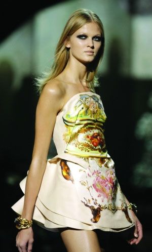 巨型首饰风格也各有不同:繁复的民族东方风格、层层缠绕而成的神秘中世纪风格、简单几何的现代风格。坚硬的珠宝可以像丝巾般柔软缠绕、十几副手镯串在一起也能当项链佩戴。配件设计师通过庞大得令人瞠目的首饰,暗示我们时装生活完全可以靠一件首饰就改头换面。