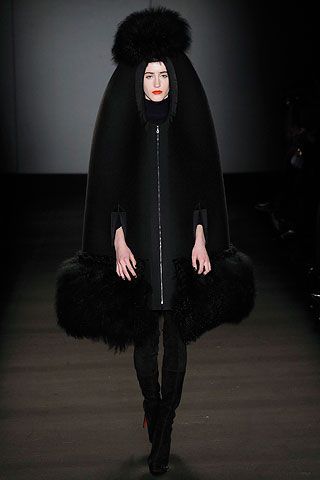 搞怪已经成为了设计师的本能,观者已经习以为常,不过这次09秋冬伦敦时装周上的Giles还是让人大跌眼镜。特别是这个斗笠造型,实在和宫崎峻动画片《千与千寻》中那位“无脸男”太像了!