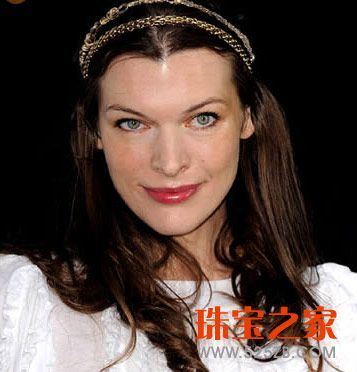 Milla JoVOVich用柔美的白色雪纺连身裙,搭配仿旧感的金属色双层发饰,精致大方,非常有女王的风味喔!