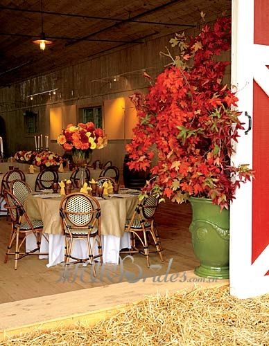 12.最后,婚宴装饰的细节也是不容忽视的。你们可以用来自祖辈们的纪念品作为装饰,也可以把红酒瓶的软木塞当作刀架使用,或者是在宴会厅的周围放上几捆干草等等。总之,充分发挥想象力,运用聪明才智令你们的秋季婚宴更加完美吧。