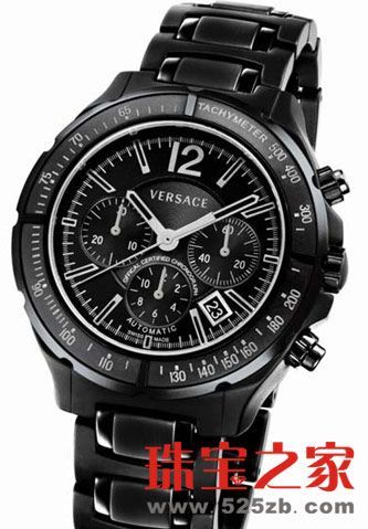 Versace最新的限量版计时表,尊呈予高级运动表的爱好者。腕表配备瑞士官方天文台表证书自动机芯,采用纯黑设计,与别不同。黑色表壳装有外圈,配上特设转速计刻度的表面、表冠、按钮及指针,与钛灰色的不锈钢时标及表托构成鲜明对比。