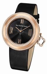 Charms腕表更具匠心的设计是悬垂于表壳外侧的精致Alhambra幸运草形状的钻石吊饰(charms)。一颗在表圈旁摇曳生姿、象征着幸运的幸运草吊饰为其配戴者平添了几许风情以及一份难以言传的美丽与优雅。Charms腕表系列特别具备可随意替换的真皮表带和随腕表附送的黑色及白色缎质表带,使每一位配戴者可根据场合和心情的不同,创造出独一无二的风格与风采。Charms腕表华贵又不失活泼,设计富有现代感,饰以幸运标志四叶草的Charms腕表是您的必备之选。2009年,Charms新增了款式,玫瑰金表壳及黑色日照效果表盘配以双行美钻镶边,展现非凡优雅。