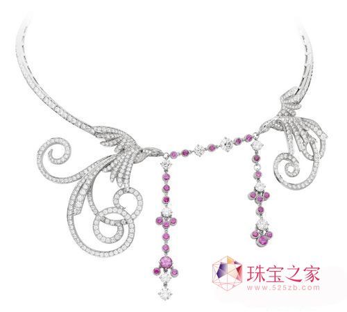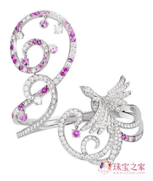 “Oiseaux de Paradis珍爱之鸟”珠宝系列以浪漫神秘的天堂鸟为灵感,修长的线条、丰满的羽毛、细致复杂的卷曲花纹、令人目眩的罕贵彩色宝石构成一个抽象而又栩栩如生的世界,在强烈的动感中展现Van Cleef & Arpels梵克雅宝特有的精致品味和非凡工艺。