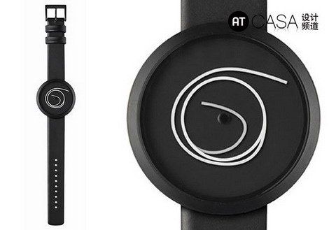 这款名为Ora Unica的手表是Denis Guidone为Nava设计的作品,其独特的造型和特殊的指针方式似乎让人一头雾水,涂鸦式的曲线代替了时针和分针,曲线内侧的线头指向小时的刻度,而外侧则是指向分钟,虽然看上去像是一根完整的曲线,但实际上却是两根独立旋转的线条。