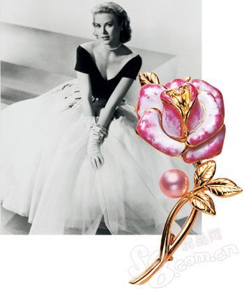 Grace Kelly以高贵、典雅之美著称,Mikimoto推出的“Princess Grace Collection”胸针以王妃钟爱的蔷薇为主题,采用玫瑰色的金属、珍珠和珐琅材质,予人以特殊的古典美。该系列产品销售额的一部分也将赠予葛丽丝·凯莉王妃基金会。