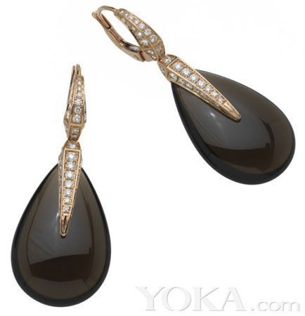 材质:玫瑰金配以烟色石英石及原色钻石。
